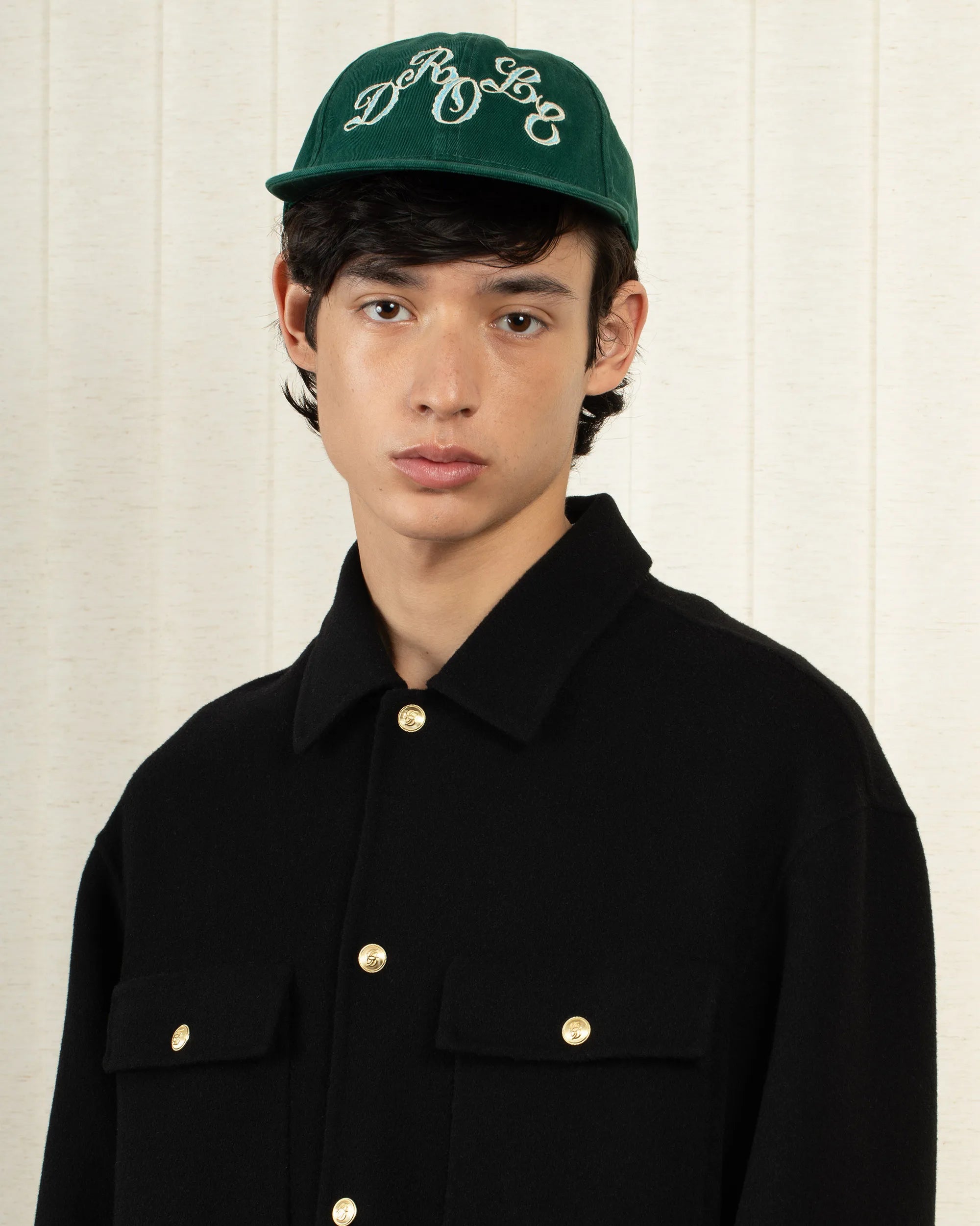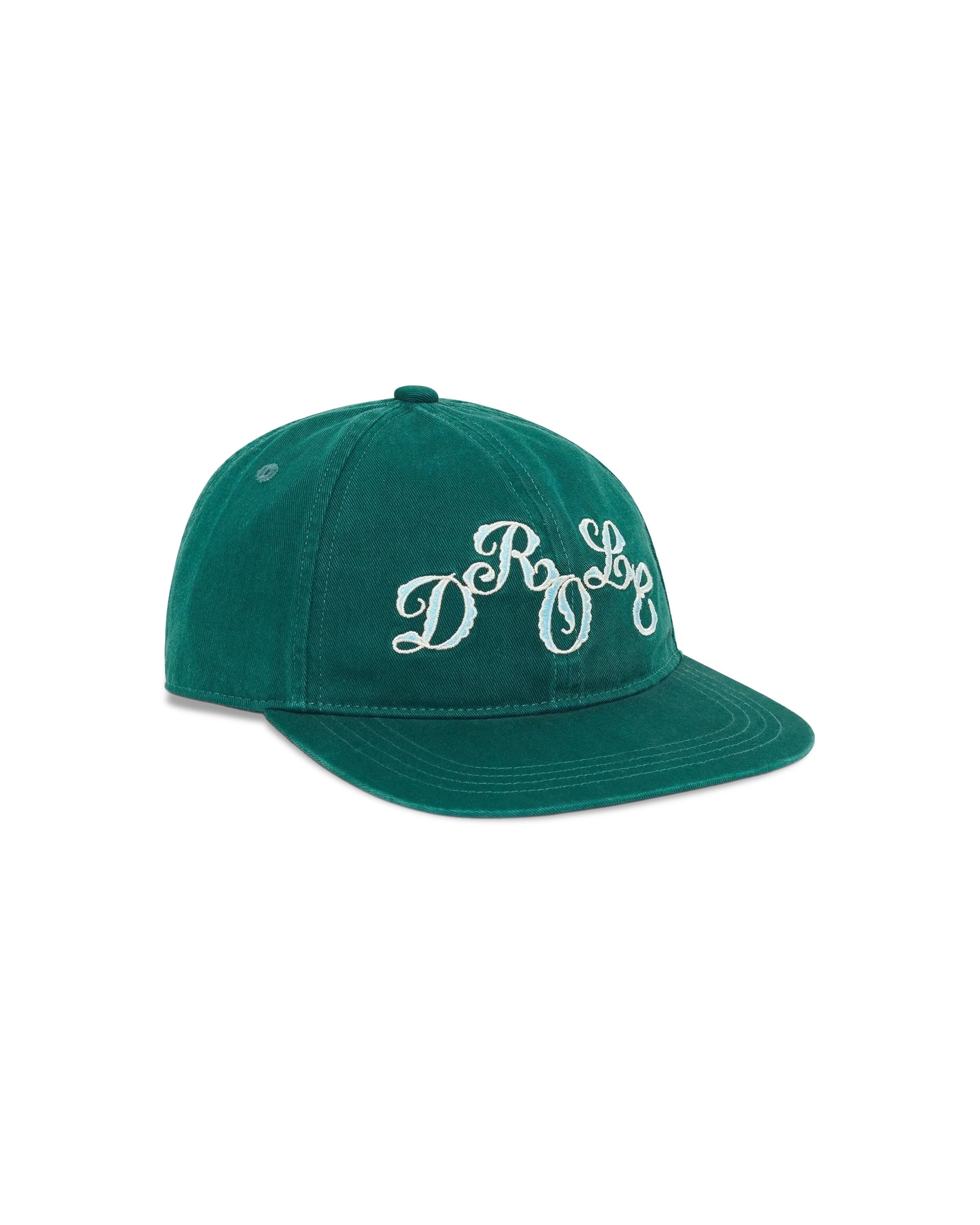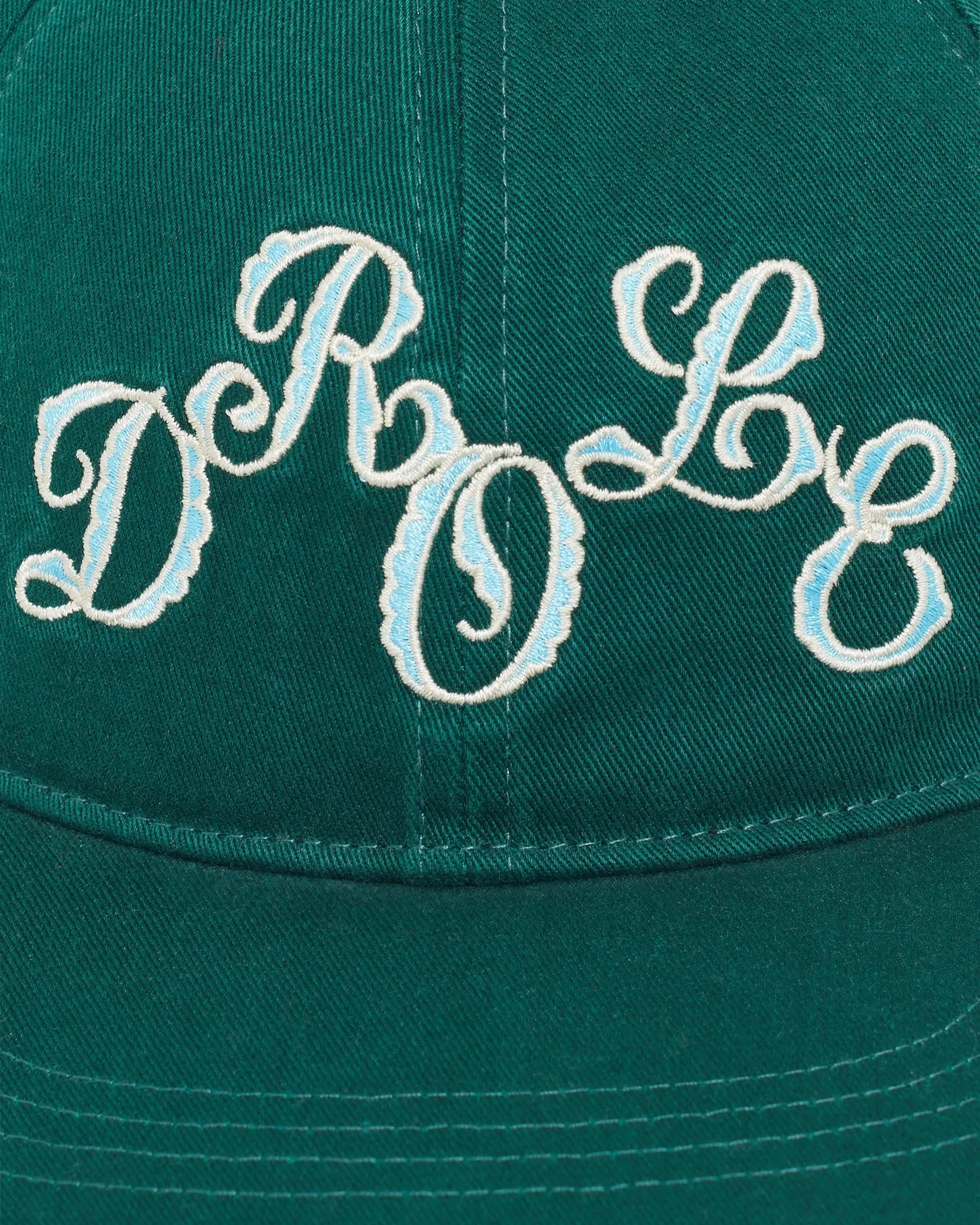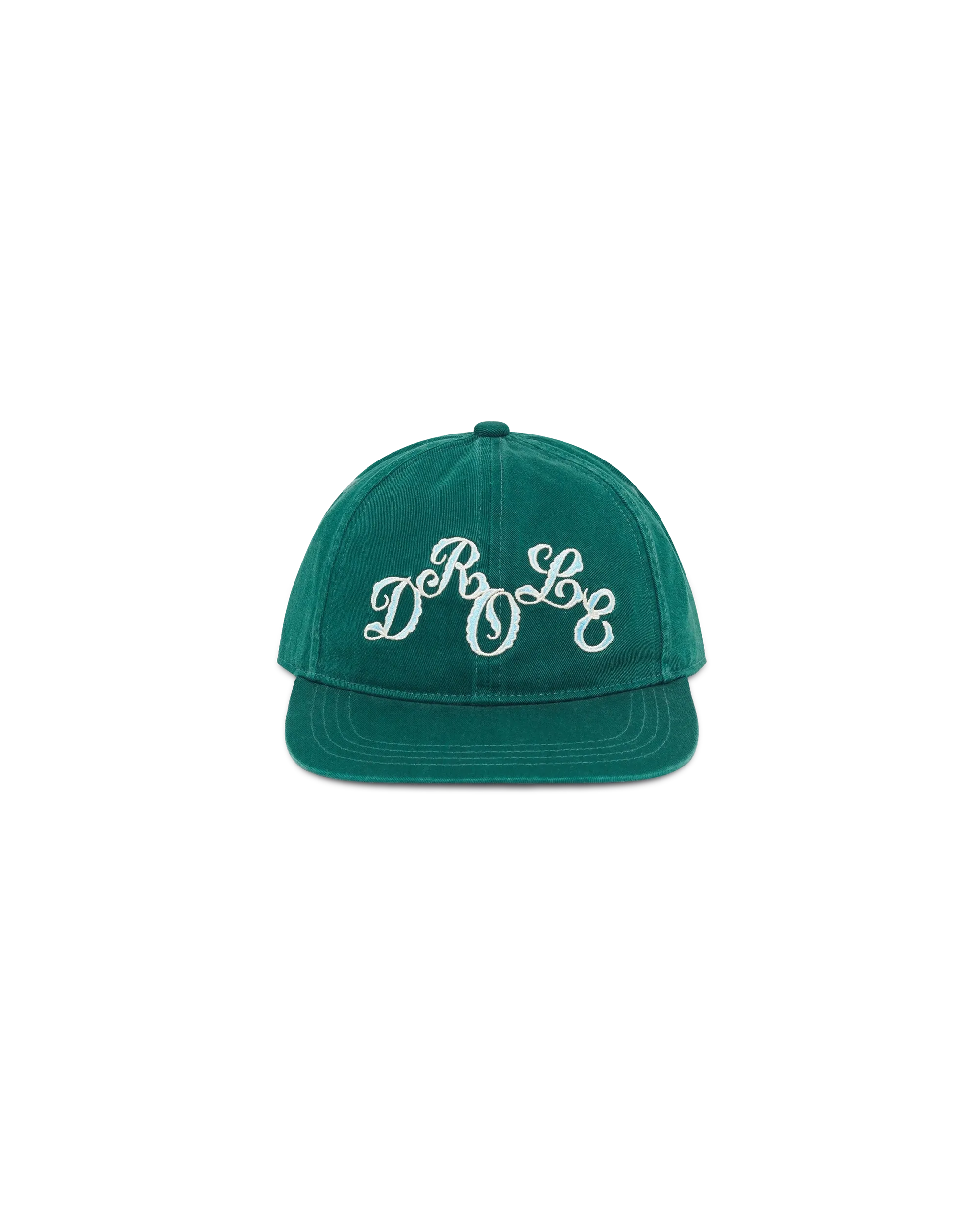 This dark green 100% cotton cap features the Drôle embroidery on the front. It has a 6 panel construction, a flat visor, an adjustable back strap and a engraved 'D' mirror metal buckle.