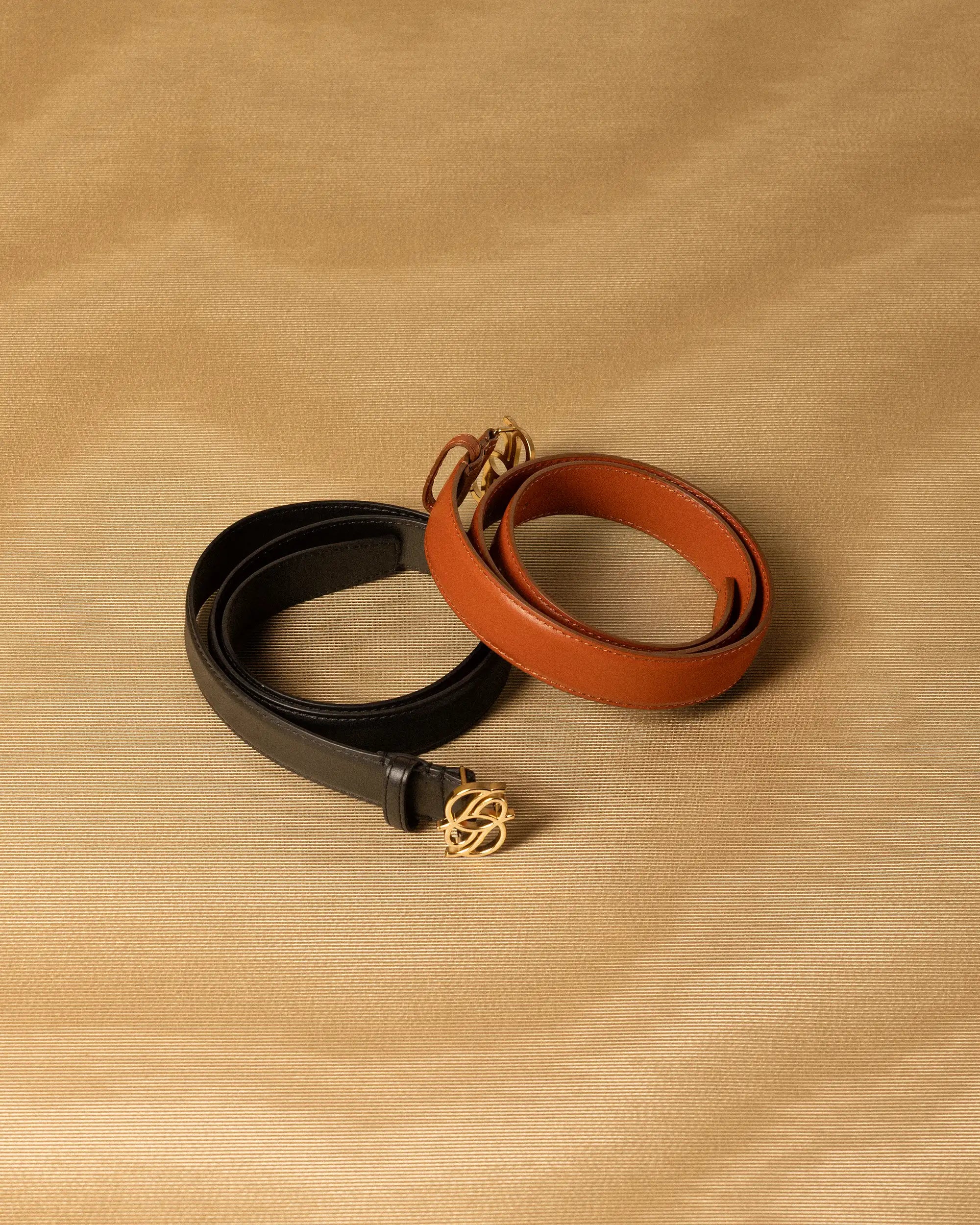 This smooth brown 100% leather belt has a golden mirrored 'D' buckle.