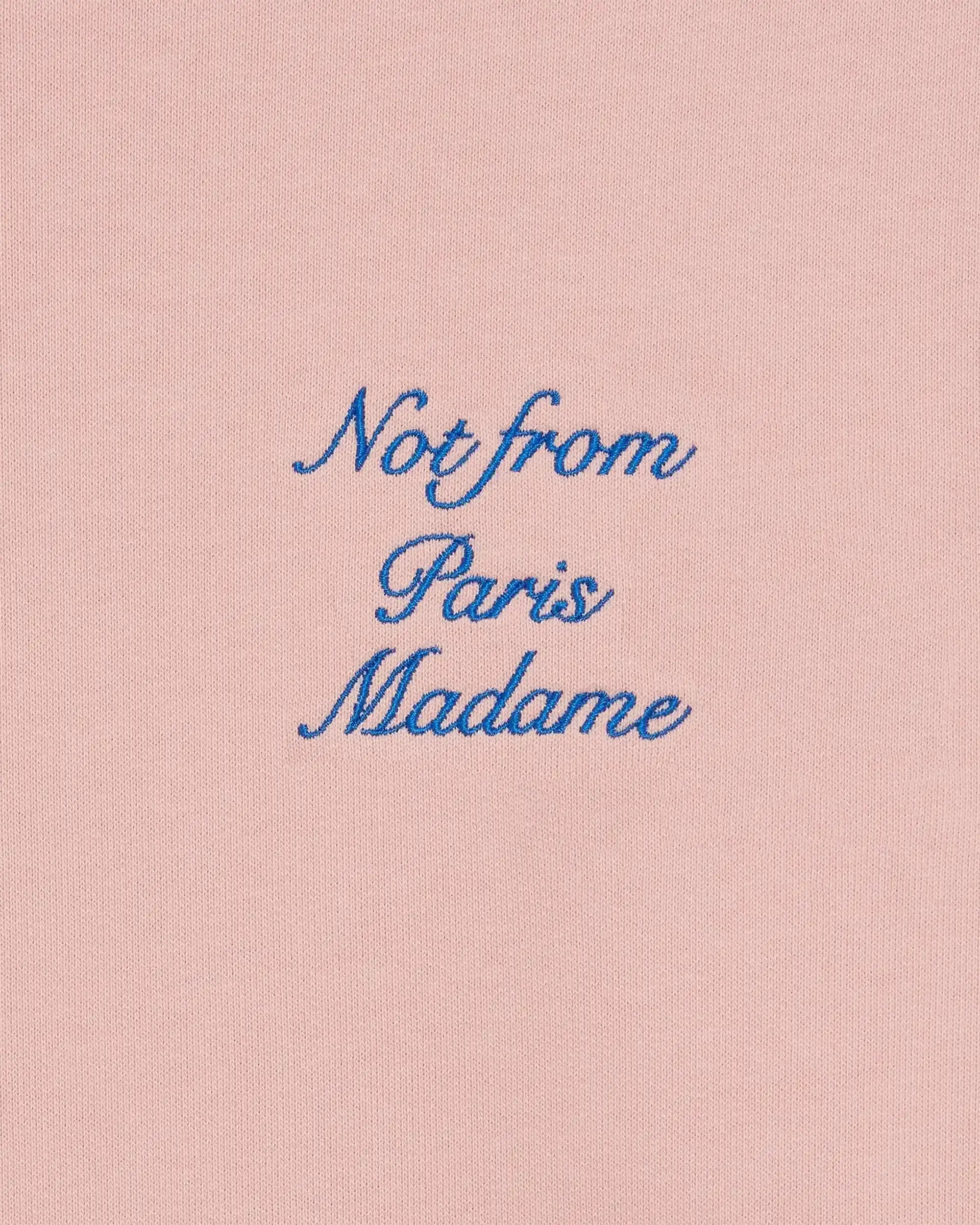 This light pink 100% cotton French terry sweatshirt has a round collar and ribbed finishes. It features the Slogan print on the front and back.